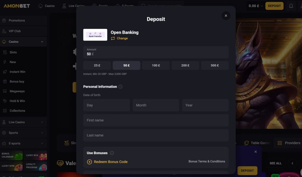 To deposit with Bank Transfer at a UK online casino, follow these steps:
